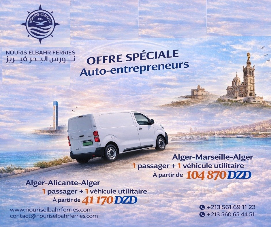 « Nouris Elbahr Ferries vous accompagne et soutient votre activité, car nous croyons que l’auto-entrepreneur est un partenaire du développement économique », précise la compagnie maritime, en ajoutant que la réservation se fait « auprès des agences agréées ».